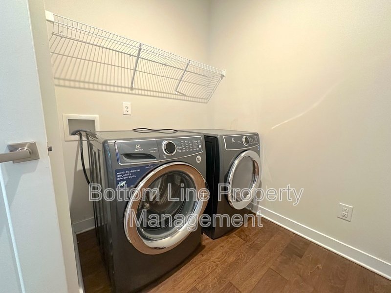 Conveniently located on the upper level, the laundry room includes a washer and dryer.