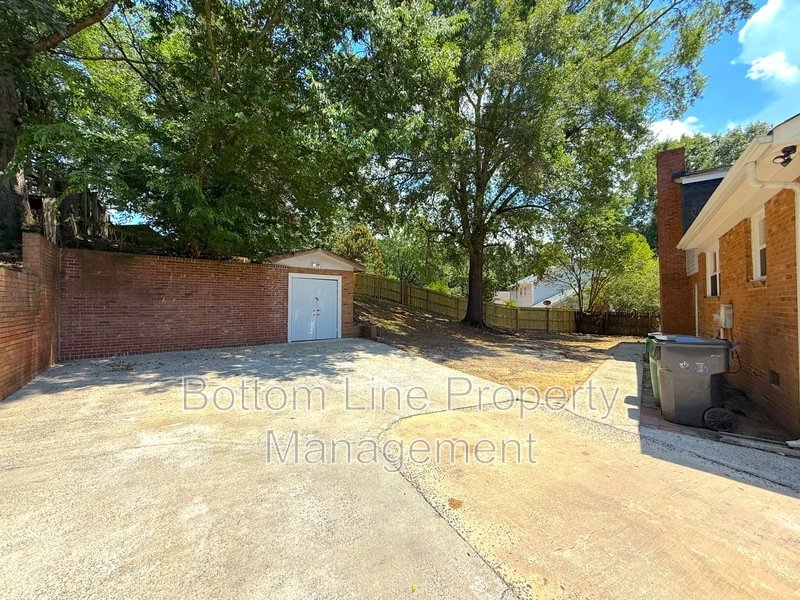 Enjoy a generous yard with a brick storage shed, multiple paved areas, and entry points from the front, rear, and both sides of the home. The side and back fencing provides a defined outdoor area.